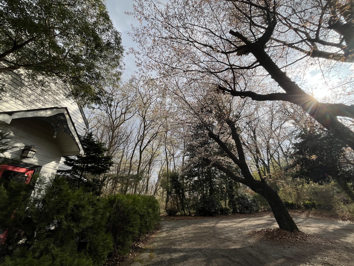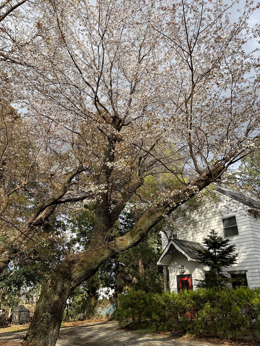 ヤマザクラが五分咲きまできました。